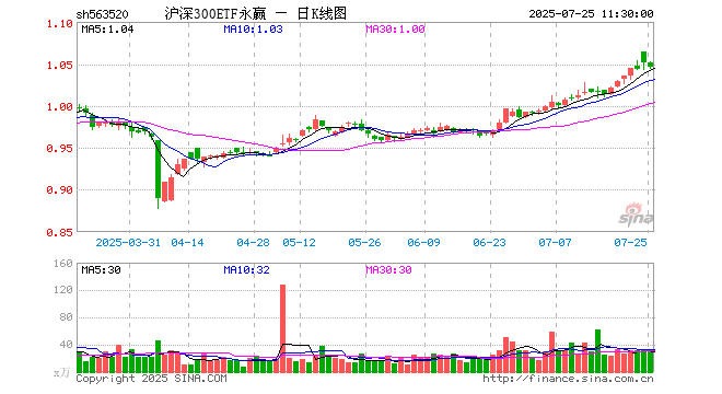 7月25日,截止午间收盘,沪深300ETF永赢(563520)跌0.48%,报1.046元,成交额3108.21万元。沪深300ETF永赢(563520)重仓股方面,贵州茅台截止午盘跌1.96%,宁德时代跌0.91%,中国平安跌0.99%,招商银行涨0.09%,兴业银行跌0.94%,长江电力跌0.14%,美的集团跌0.97%,紫金矿业跌1.09%,比亚迪跌1.71%,东方财富跌0.82%。