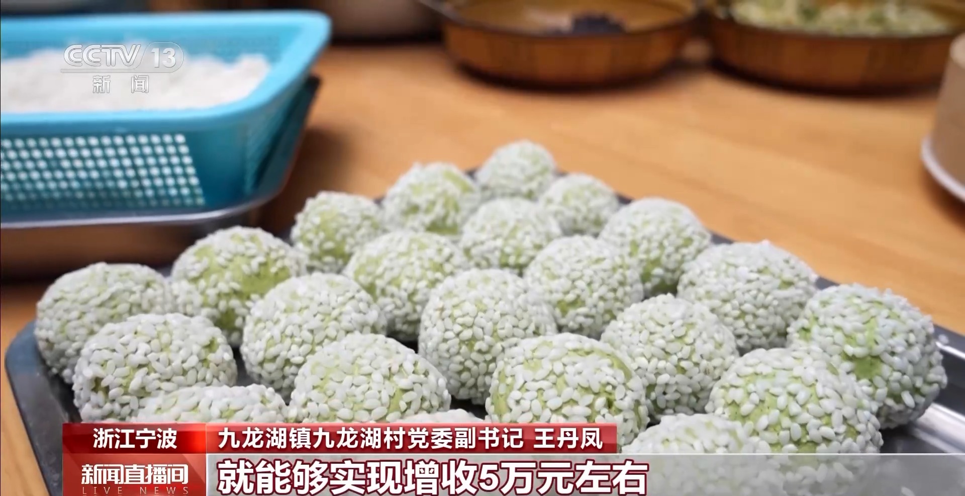 九龙湖镇九龙湖村党委副书记 王丹凤:我们全村一共有40多家农家乐,每天最多能够制作上万个青团,单凭这一季的青团销售就能够实现增收5万元左右。
